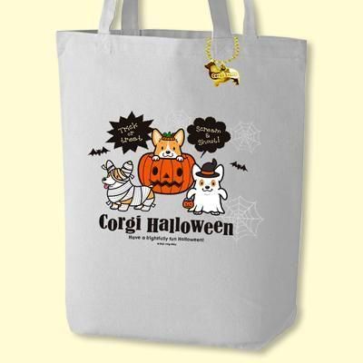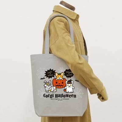 12オンス(厚手)ライトグレーカラーのキャンバストートバッグです!ハロウィンコーギーのデザインとなっております♪