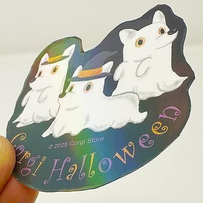 ハロウィンコーギーデザインのステッカーシールです。オーロラ加工が施してあるので、動かす度にキラキラと綺麗なシールとなっております!透明スマホケースに貼ったり、デコレーションしたり色々楽しんで下さいね!