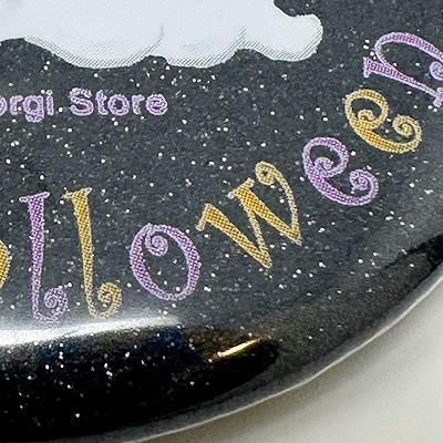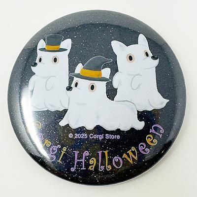 ハロウィンコーギーデザインの黒グリッター缶バッジです。バッグや帽子、ファッショングッズ等に付けてハロウィン気分を盛り上げて下さいね!