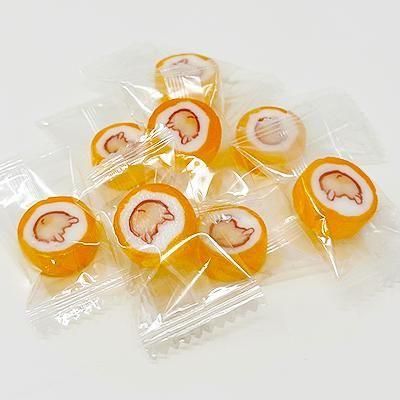 (1)オレンジ味キャンディ(個別包装/10個)‥‥約 直径2.2cm×幅1cm
