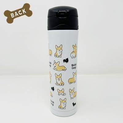 コーギーデザインの真空ステンレスボトルです。安全ロック付きのワンタッチ式のボトルで直飲みOKなボトルです。ワンタッチ蓋は脱着すると氷も入る口径で便利です!保温保冷もバッチリなので毎日のマイボトルとしてお使い下さい♪