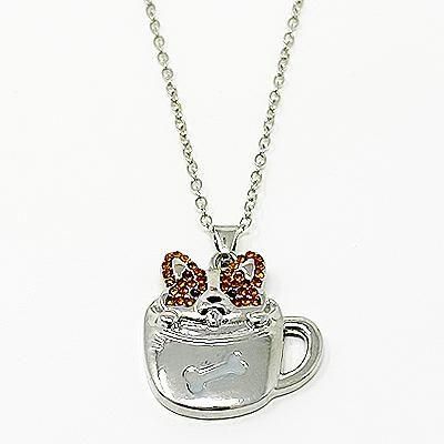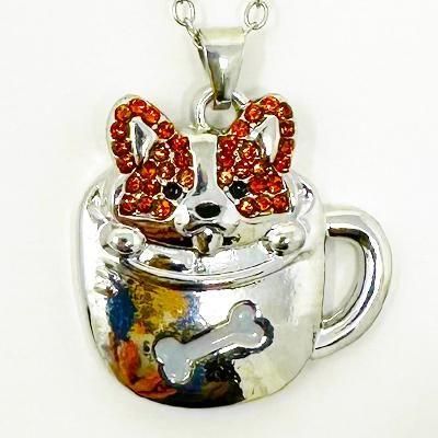 コーギーデザインのシルバーカラーのネックレスです!カップの中からコーギーがのぞいております!